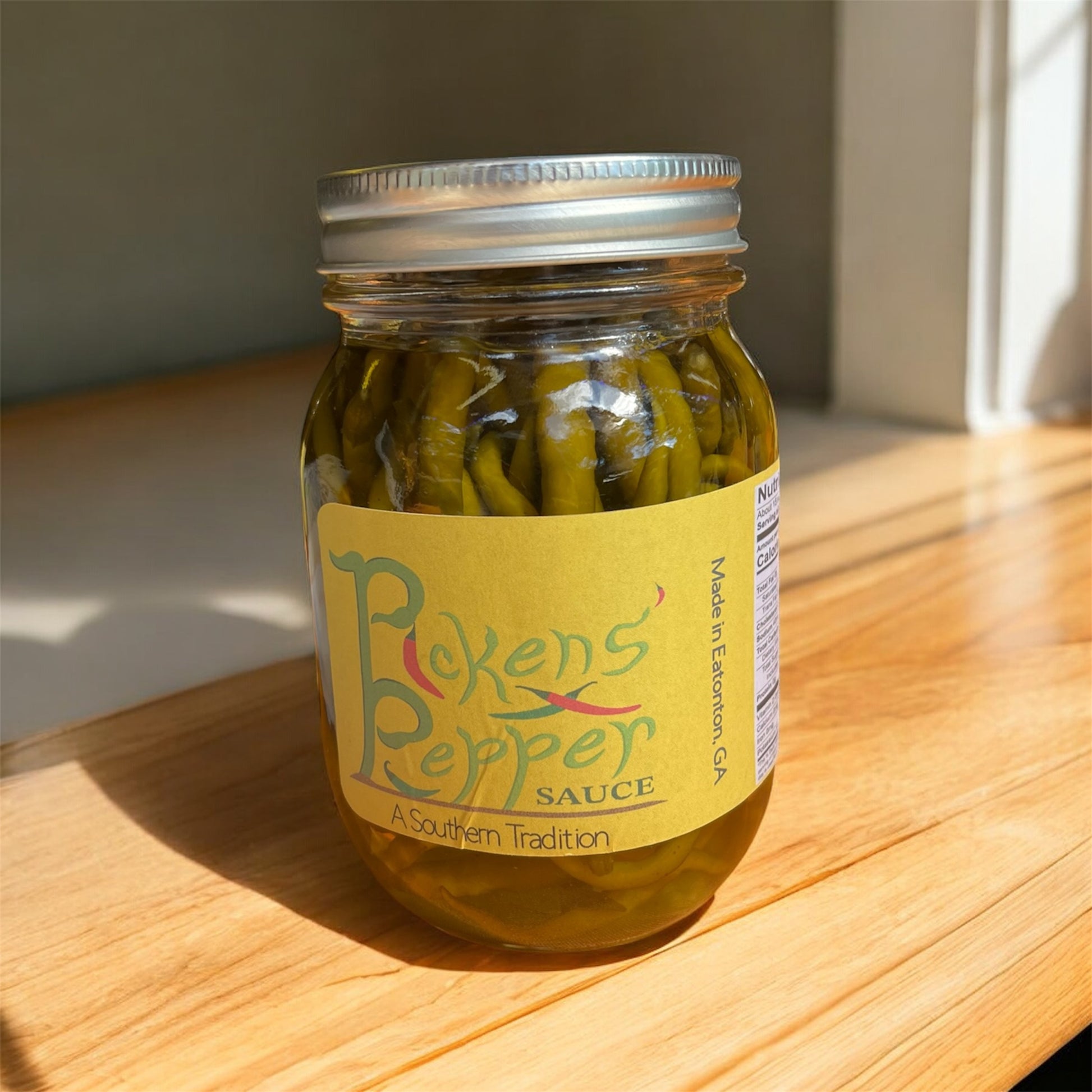 Pint size jar for easy access to peppers.